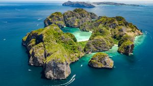 Aerial Drone View Of Tropical Ko Phi Phi Island, Beaches And Boa